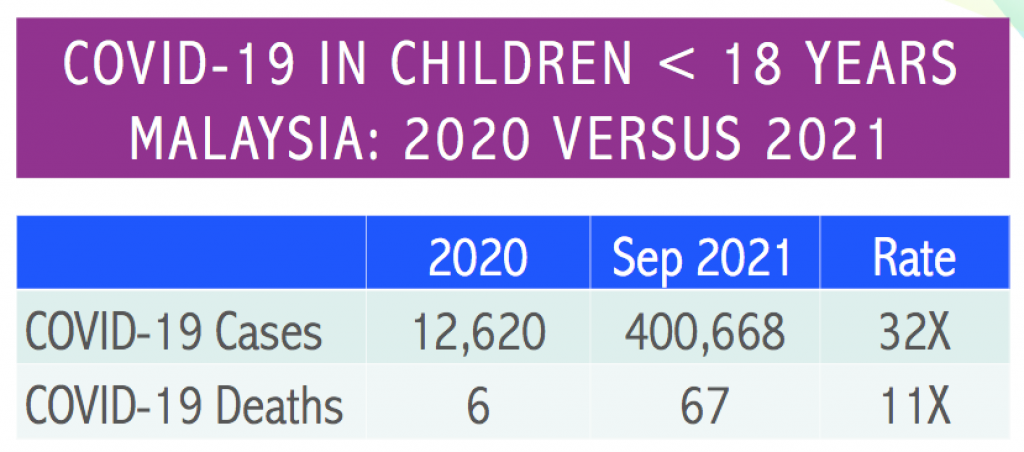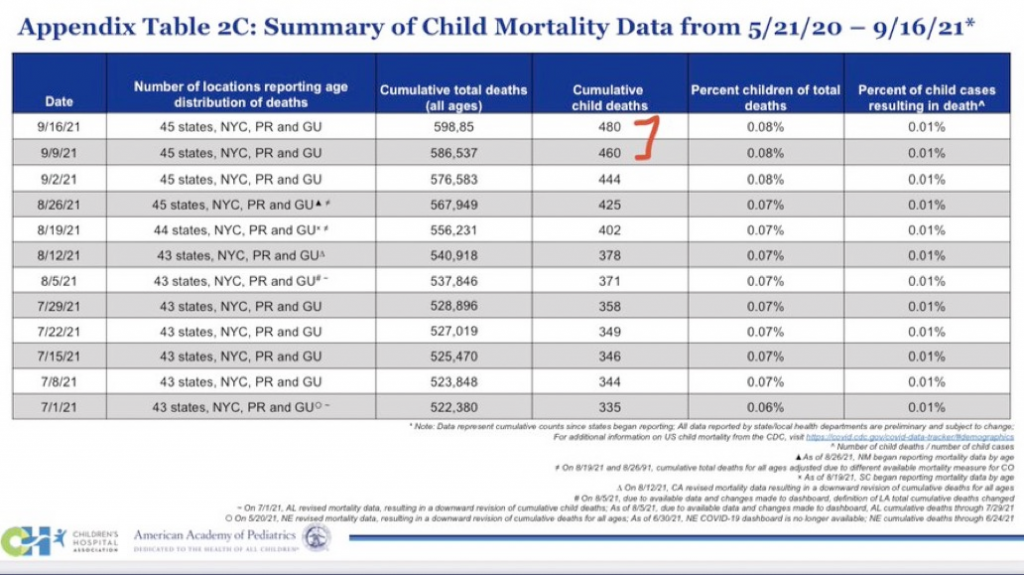 There has been an explosive increase in the number of children infected and dying from COVID-19 up until mid-September 2021 compared to the previous year.