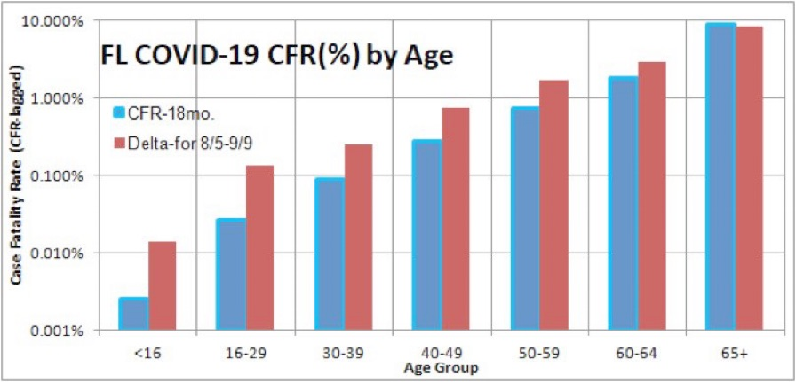 The Delta variant has caused a 6-8 fold increase in the Case Fatality Rate of children as shown in the table below.